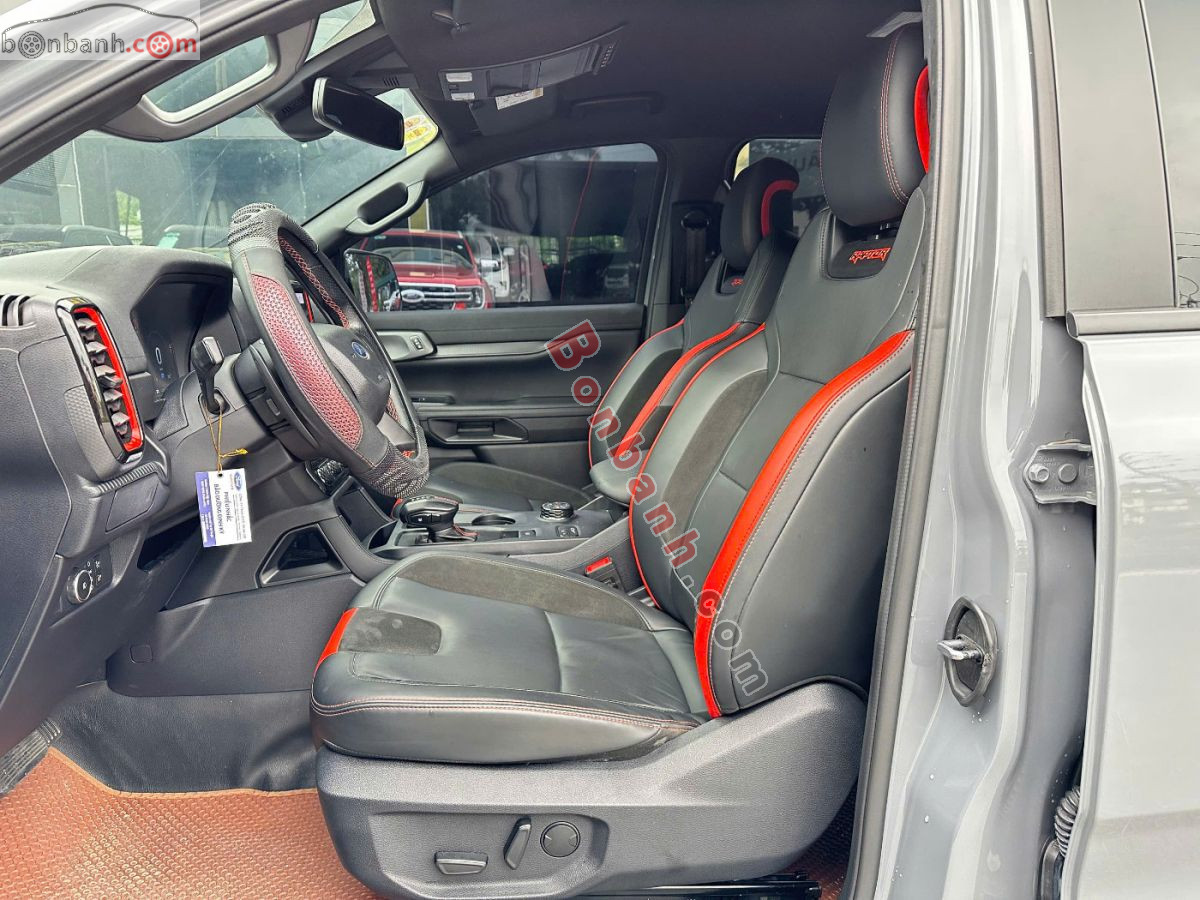 Chợ ô tô Cẩm Phả mới về Ford Raptor 2023, 4vạn, 1090. Xe có nội thất thể thao với ghế bọc da, vô lăng bọc da, màn hình kỹ thuật số 12.4 inch và màn hình cảm ứng giải trí 12 inch, cùng với camera 360 độ và nhiều tính năng an toàn